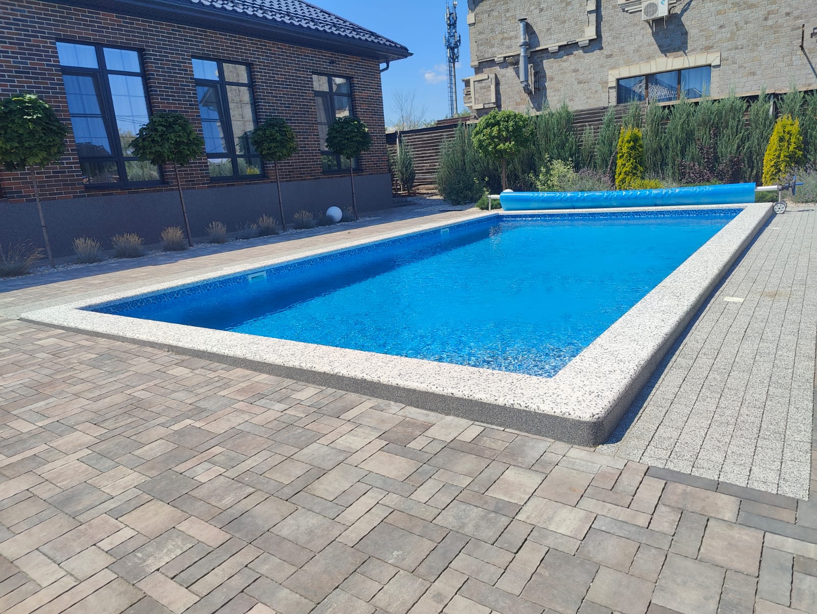 Отделка цоколя бассейна мраморной крошкой – новости с объекта