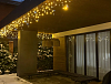 - Для реализации проекта была выбрана профессиональная светодиодная бахрома с классом защиты IP65. Тёплое свечение (2700-3000K) идеально подошло к фасаду, создав атмосферу домашнего уюта и тепла.