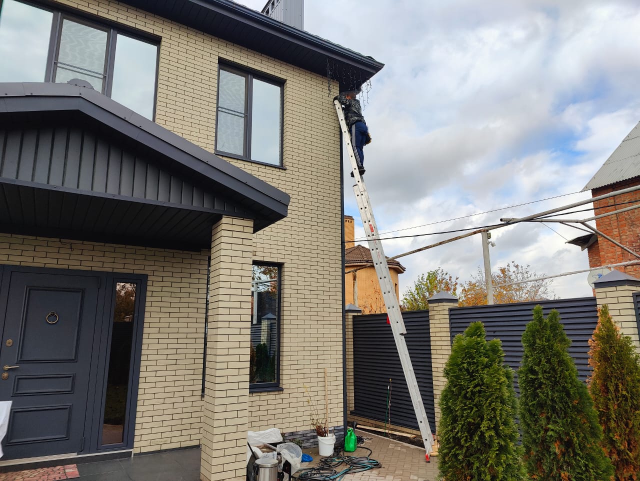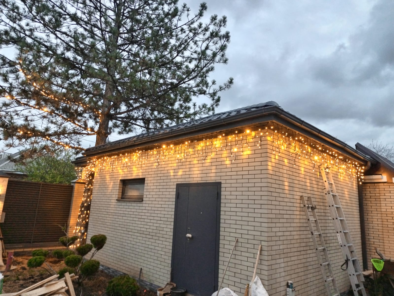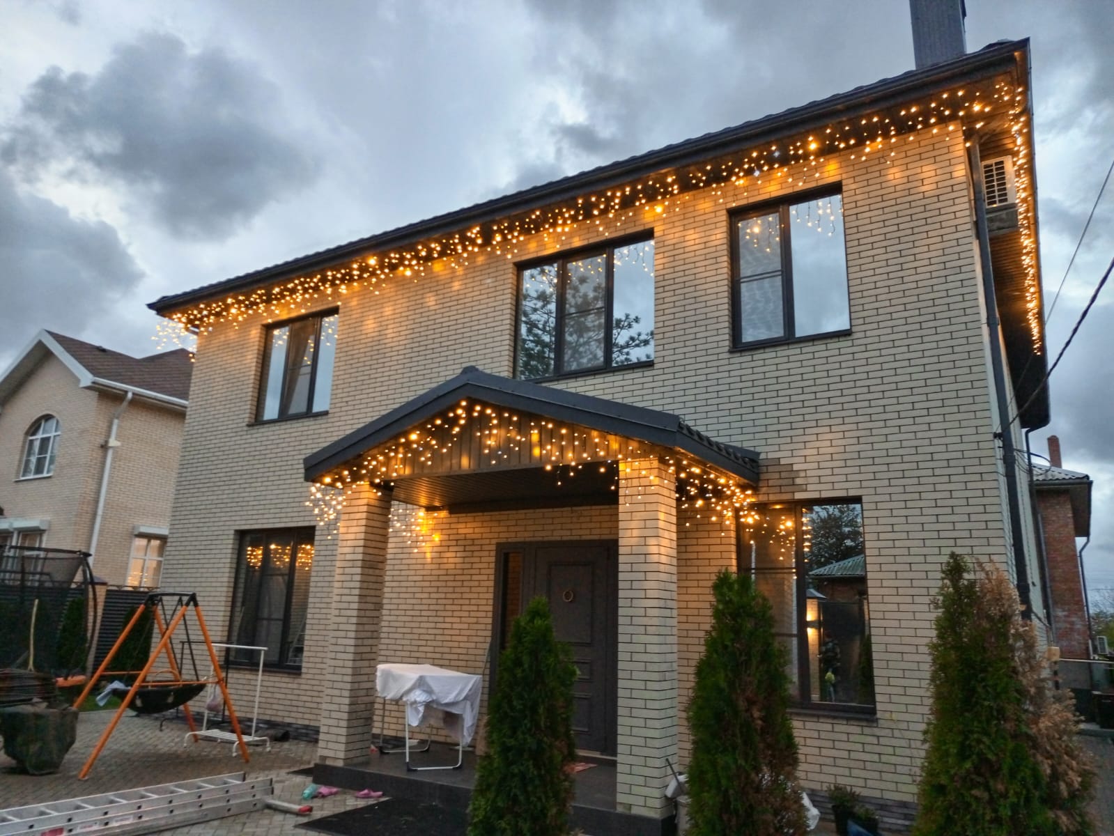 Для освещения фасадов домов мы используем исключительно высококачественные гирлянды с уровнем защиты IP65, что гарантирует их влагостойкость и надежную работу даже при сильных перепадах температур.