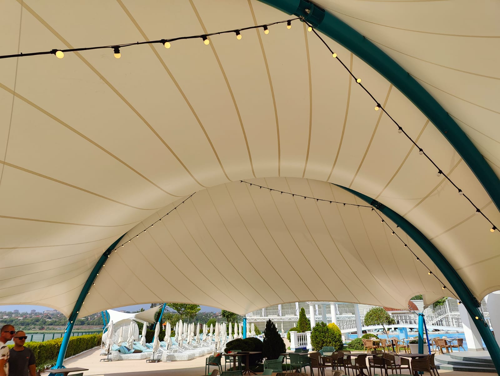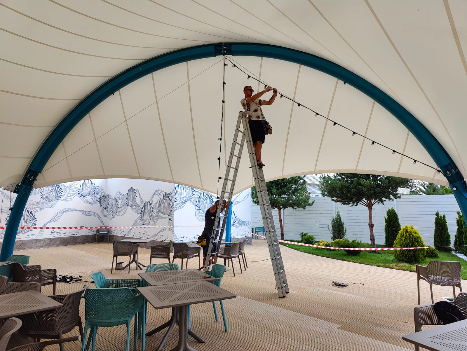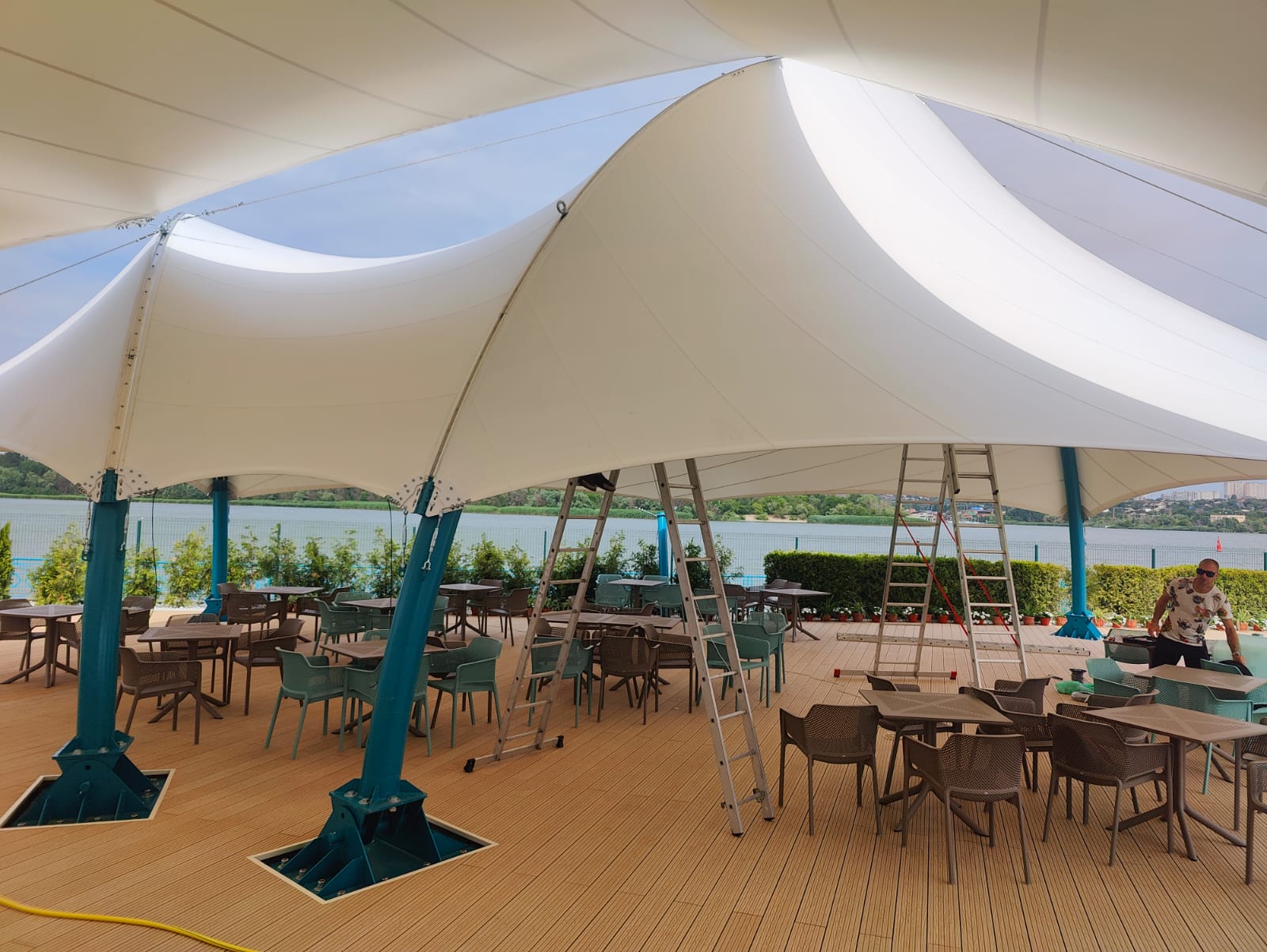 Мы продолжаем невероятно красивый, яркий сезон освещения набережной Дона гирляндами Белт Лайт. На этот раз украсили крытое кафе гирляндами.