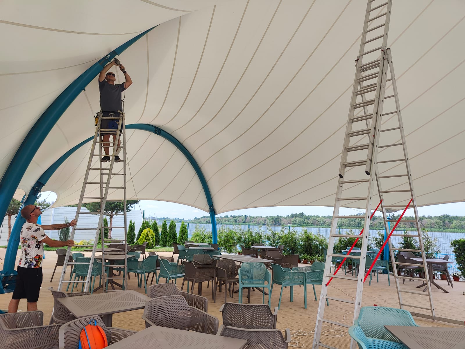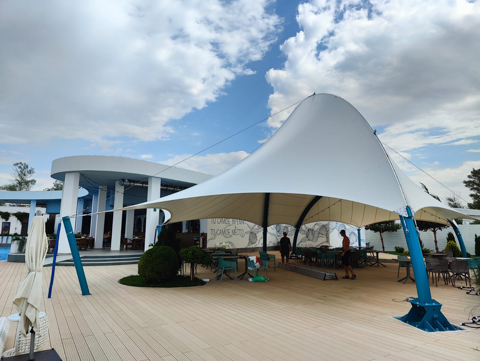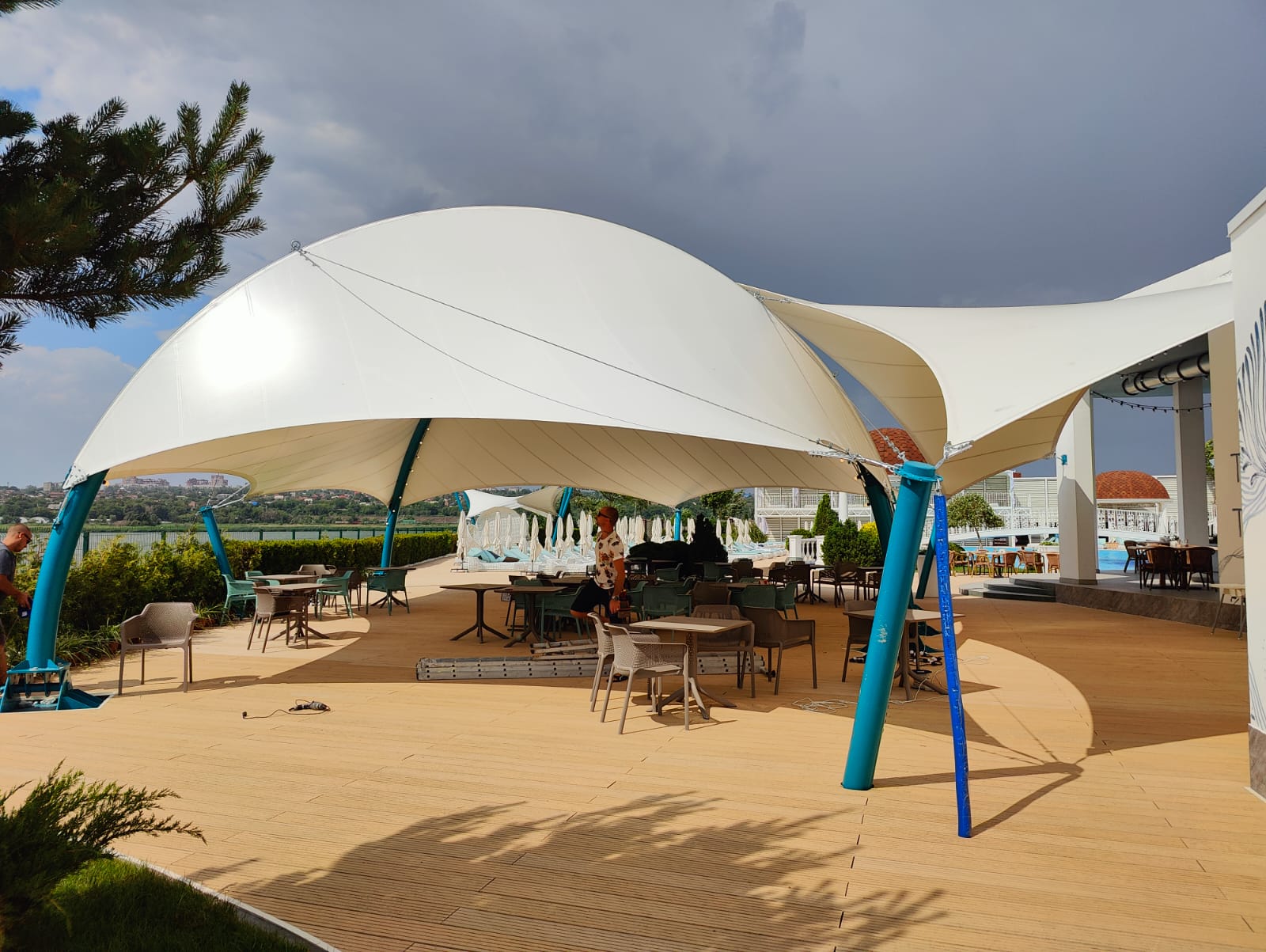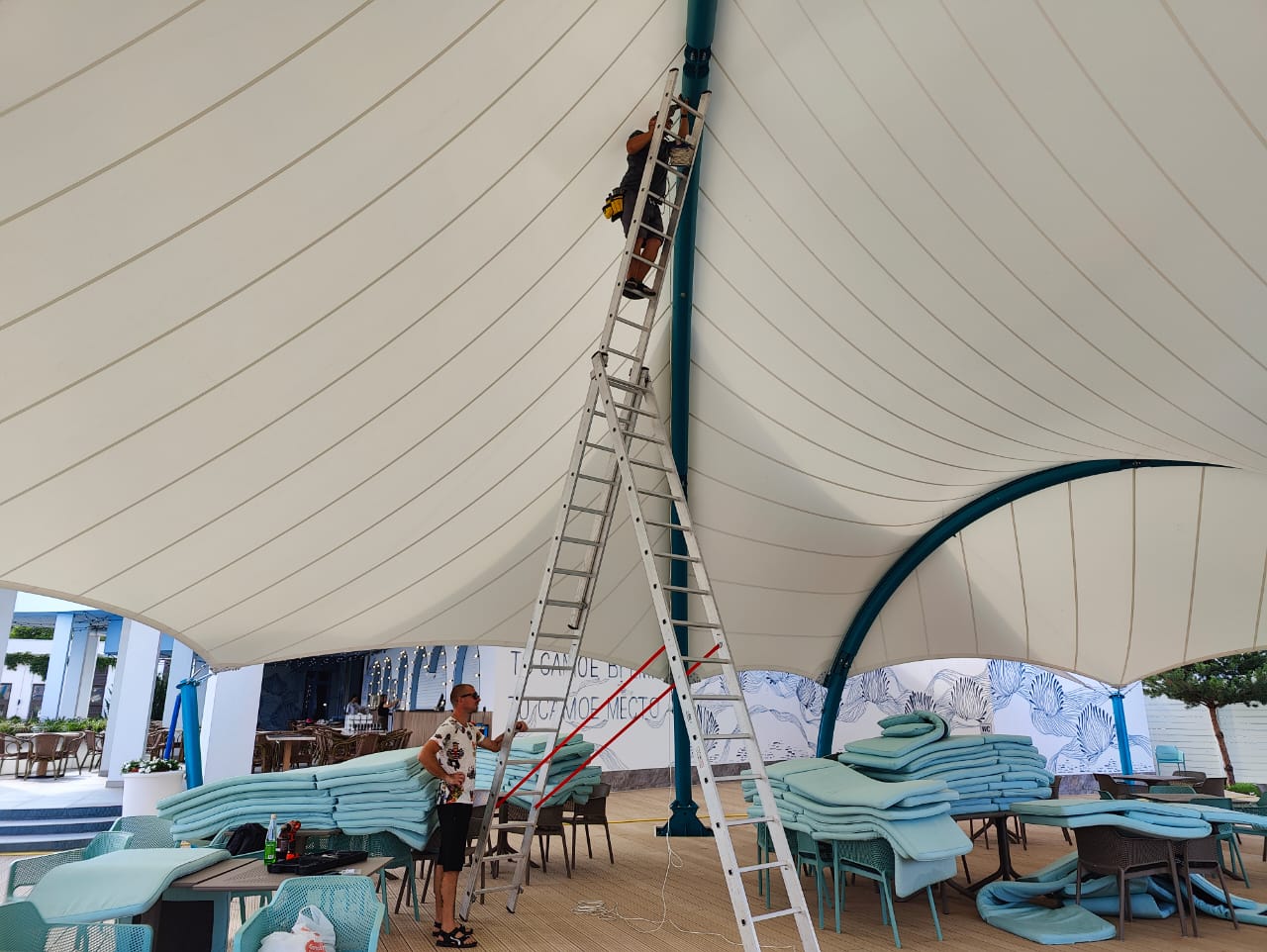 Мы продолжаем невероятно красивый, яркий сезон освещения набережной Дона гирляндами Белт Лайт. На этот раз украсили крытое кафе гирляндами.