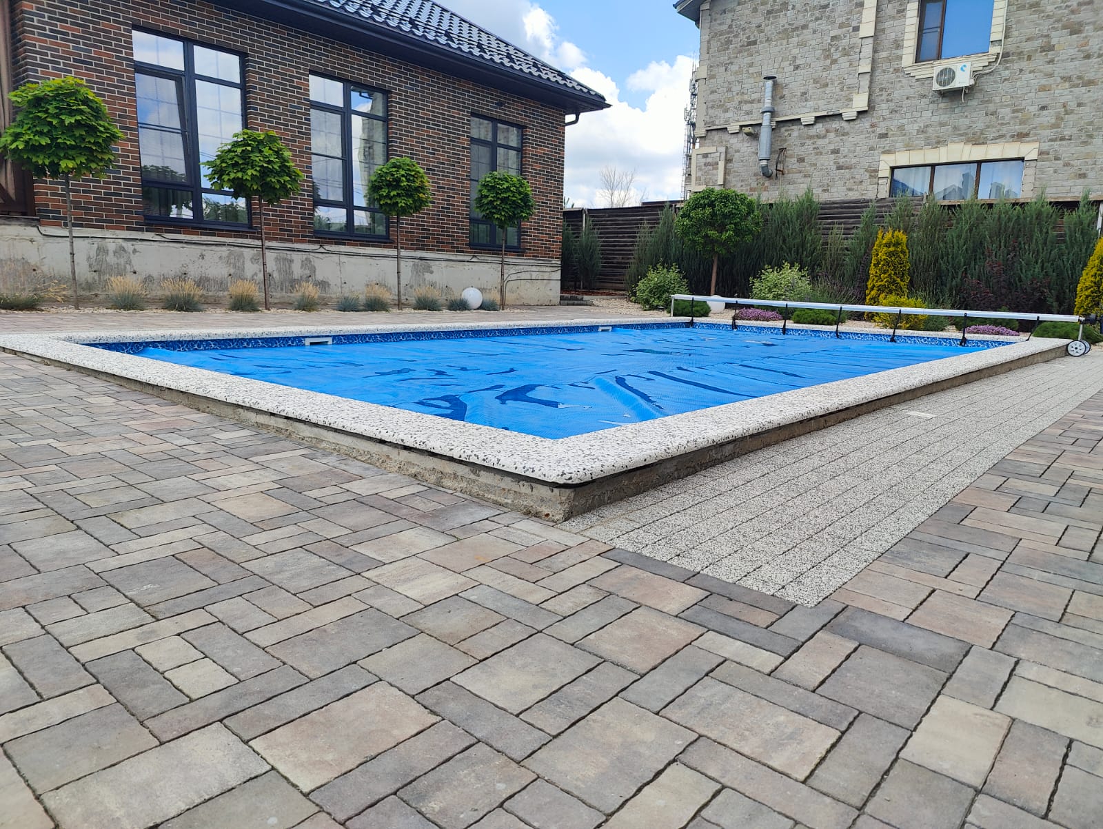 Отделка цоколя бассейна мраморной крошкой – новости с объекта