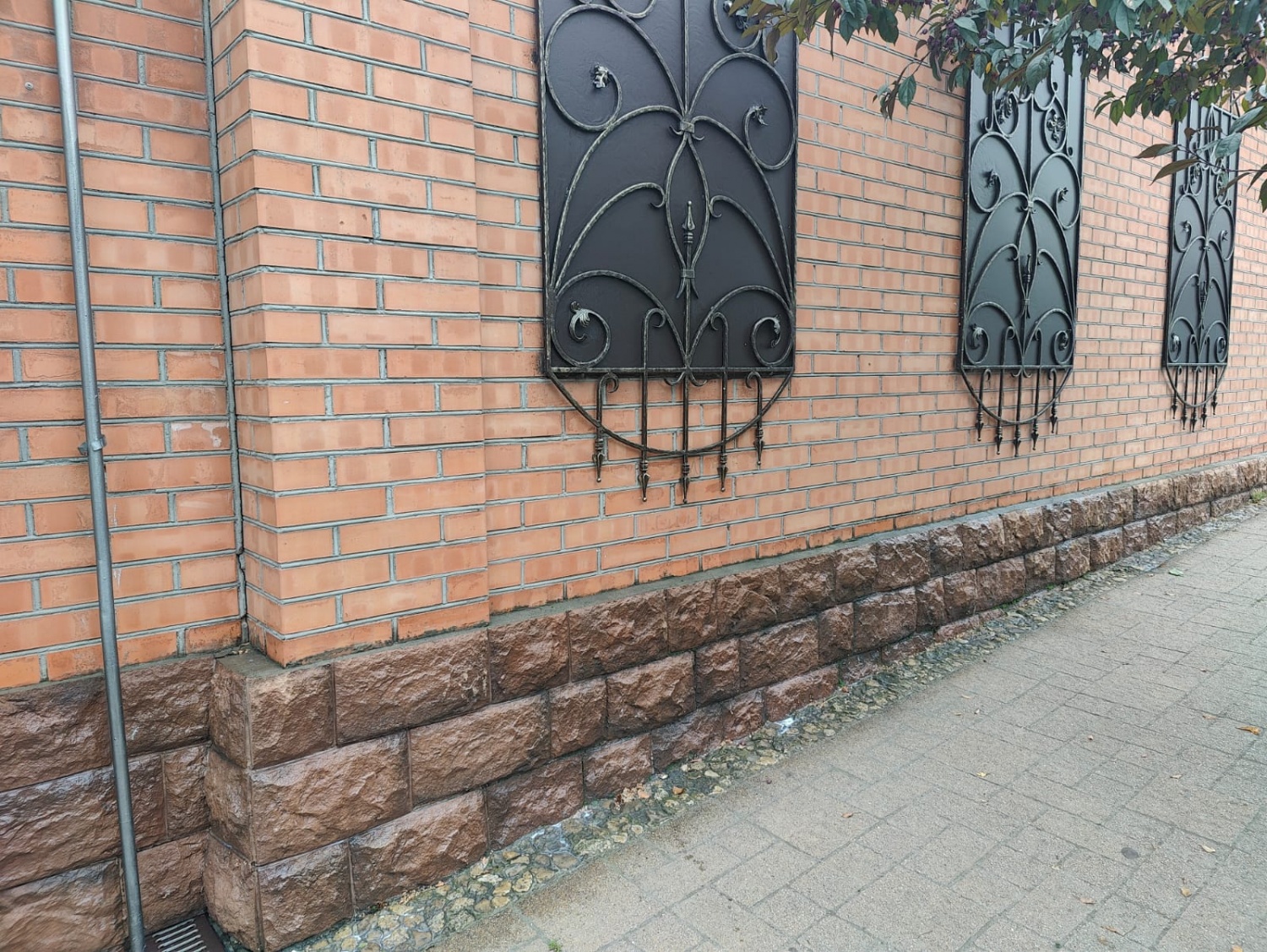 Мы обработали декоративный камень по цоколю дома гидрофобной пропиткой. Почему цоколь? Потому что именно цоколь максимально подвержен воздействию осадков.