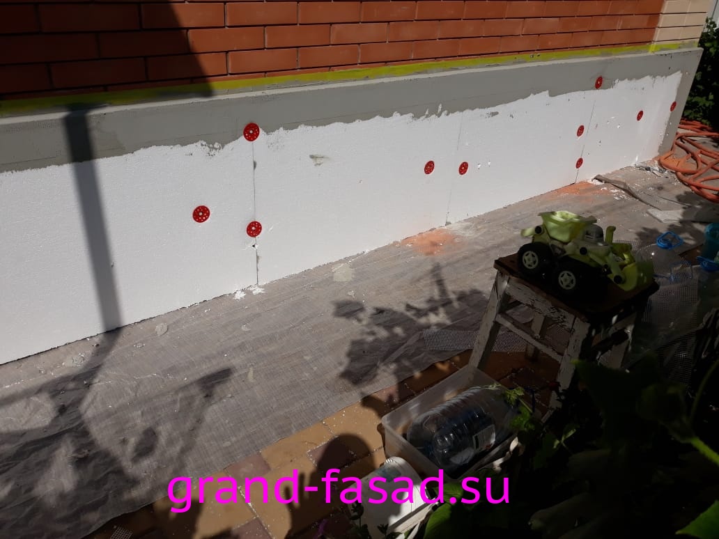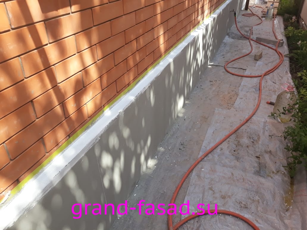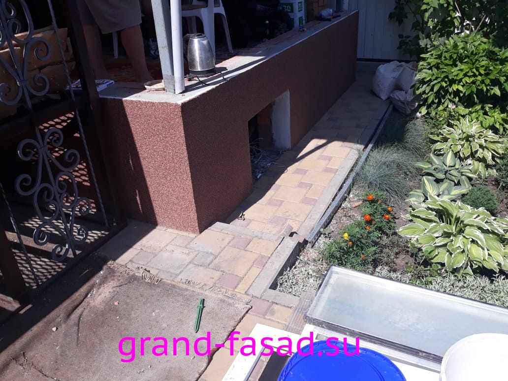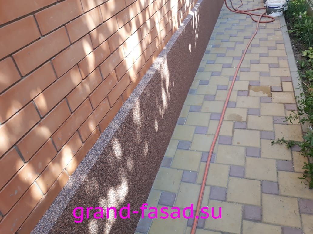Нами было произведено утепление цоколя по системе «мокрый фасад». В качестве финишной отделки - применили декоративною штукатурку "мраморная крошка