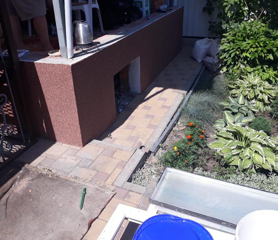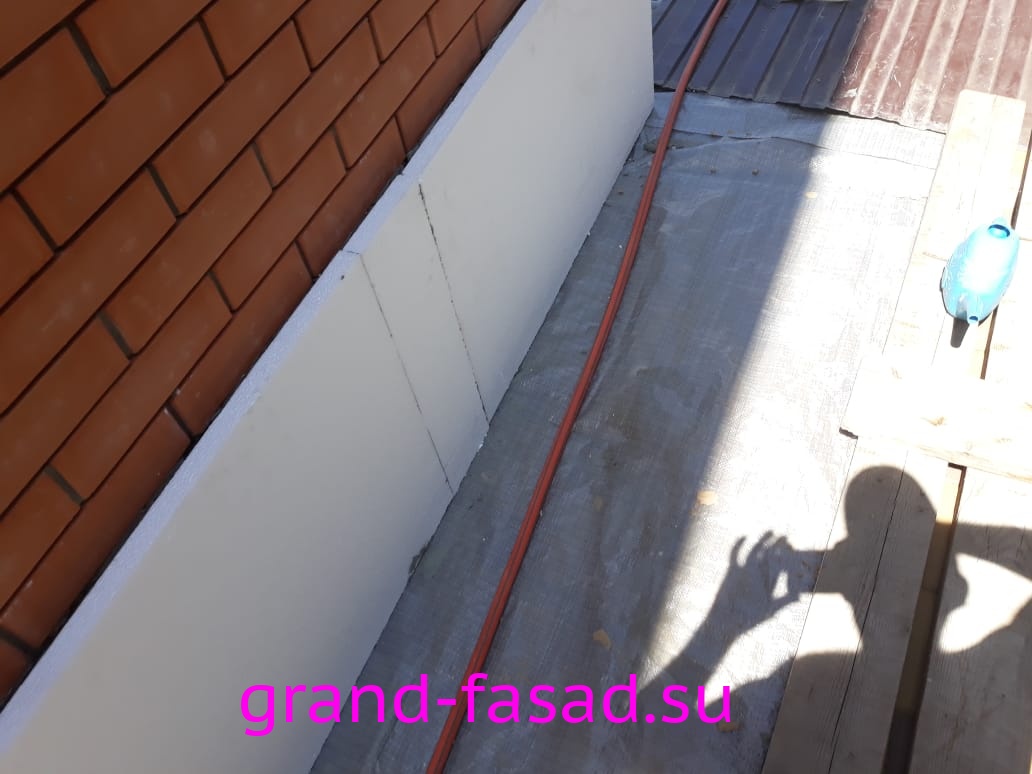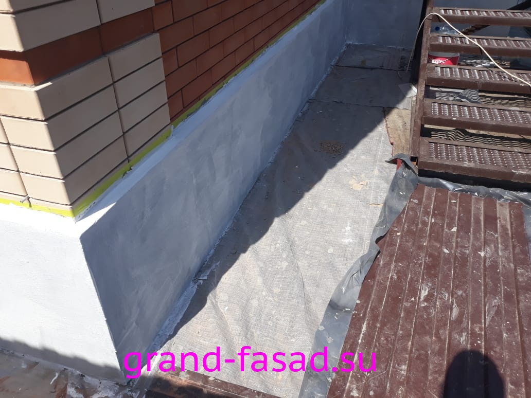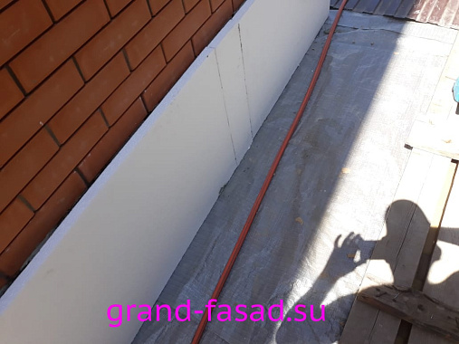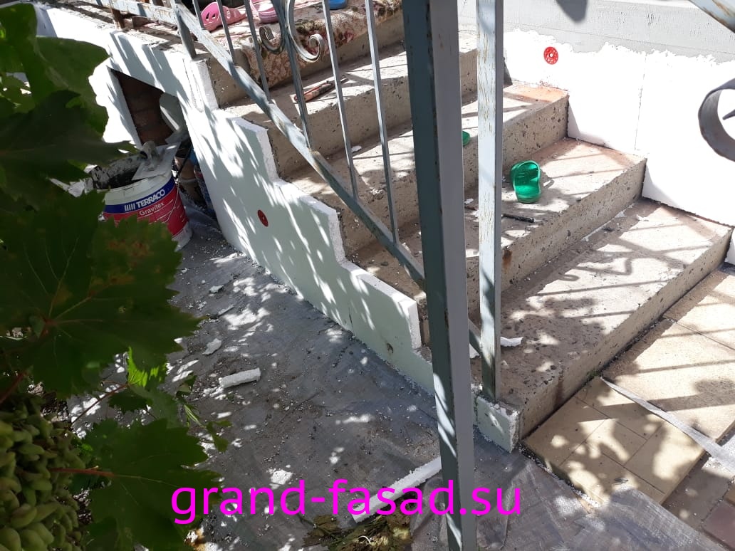 Нами было произведено утепление цоколя по системе «мокрый фасад». В качестве финишной отделки - применили декоративною штукатурку "мраморная крошка