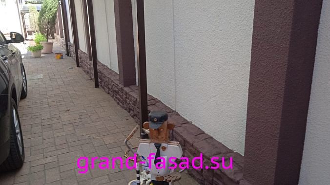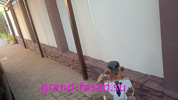 В нашем случае произошло всё наоборот. После обработки гидрофобизатором – на камне были заметны все недоставки – ржавчина, пятна. В итоге владельцы решили – покрасить декоративный камень. Краску мы применяли силиконовую, с чудодейственным эффектом – самоочищения.